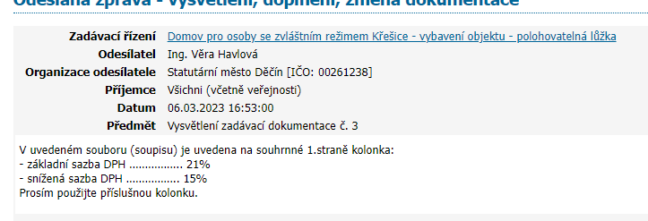 Veřejná zakázka: Domov pro osoby se zvláštním režimem Křešice - vybavení objektu - polohovatelná lůžka